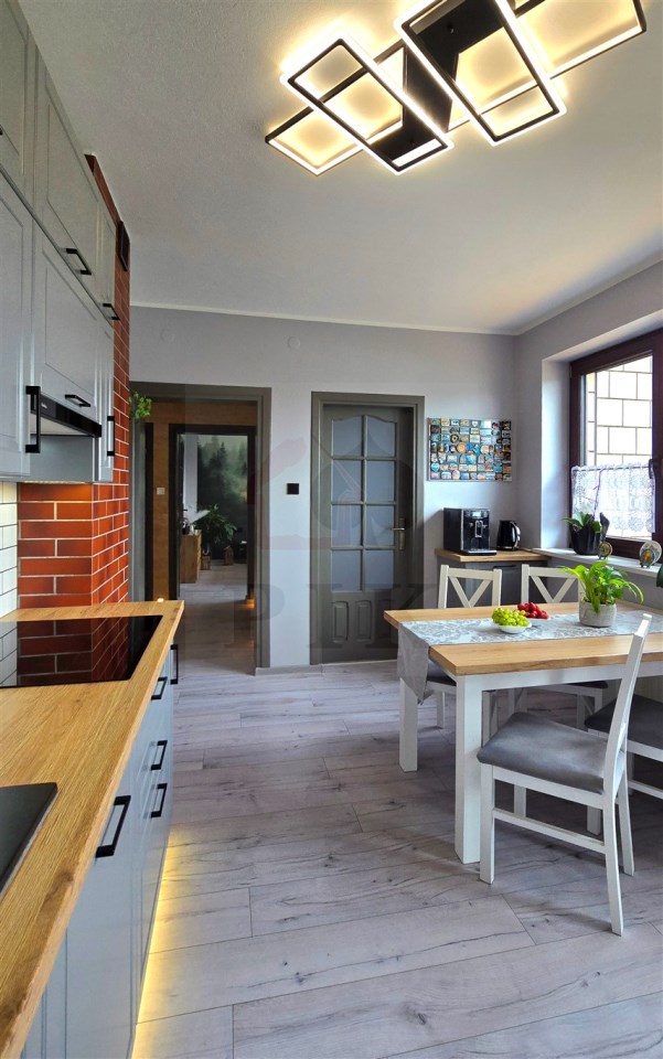 - 2 kuchnie – idealne dla dużej rodziny lub dwupokoleniowego układu (kuchnia na parterze z wyjściem do ogrodu,