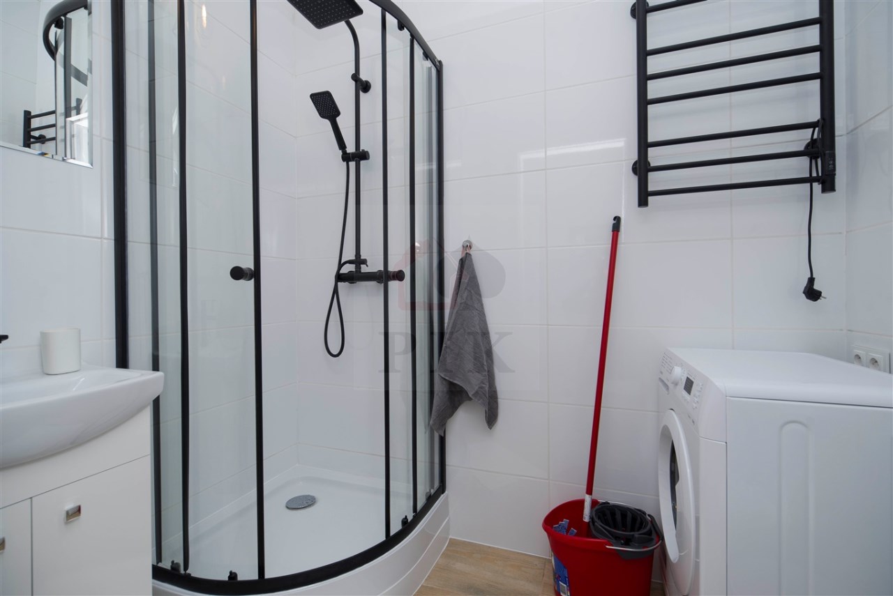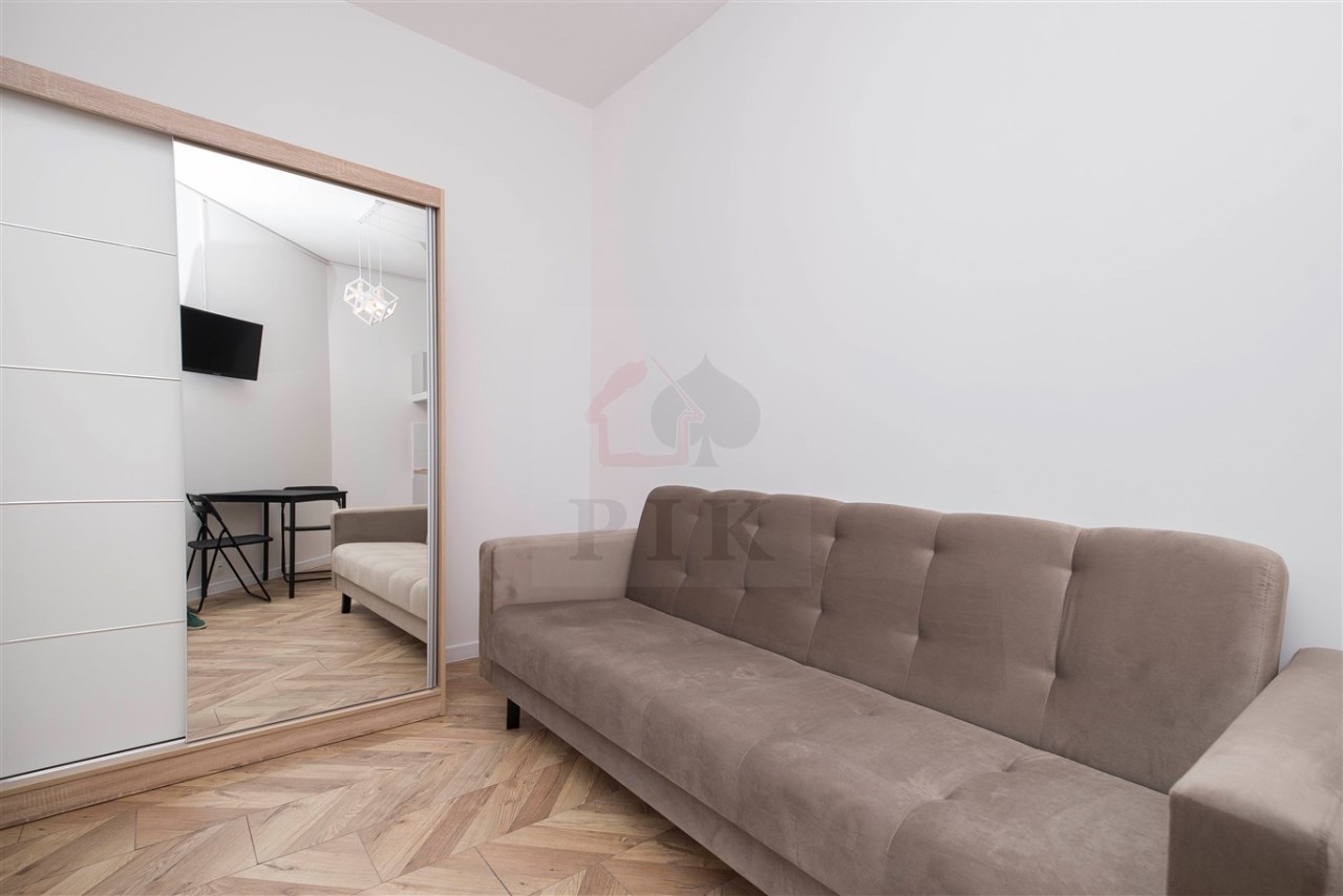 -pełne wyposażenie, rozkładana kanapa, szafa, stół, krzesła, telewizor, zabudowana kuchnia, płyta elektryczna, lodówka, mikrofalówka, pralka oraz podstawowe wyposażenie kuchenne garnki, talerze, szklanki, sztućce itp.