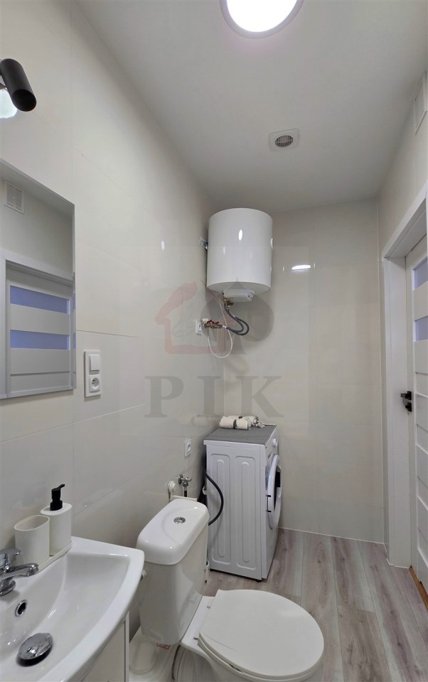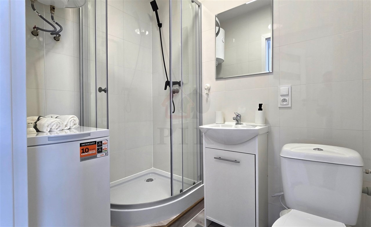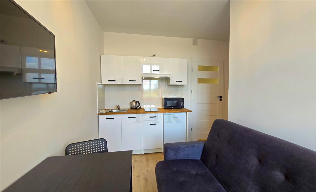 -pełne wyposażenie, rozkładana kanapa, szafa, stół, krzesła, telewizor, zabudowana kuchnia, płyta elektryczna, lodówka, mikrofalówka, pralka oraz podstawowe wyposażenie kuchenne garnki, talerze, szklanki, sztućce itp.