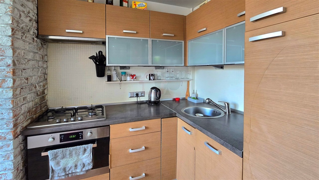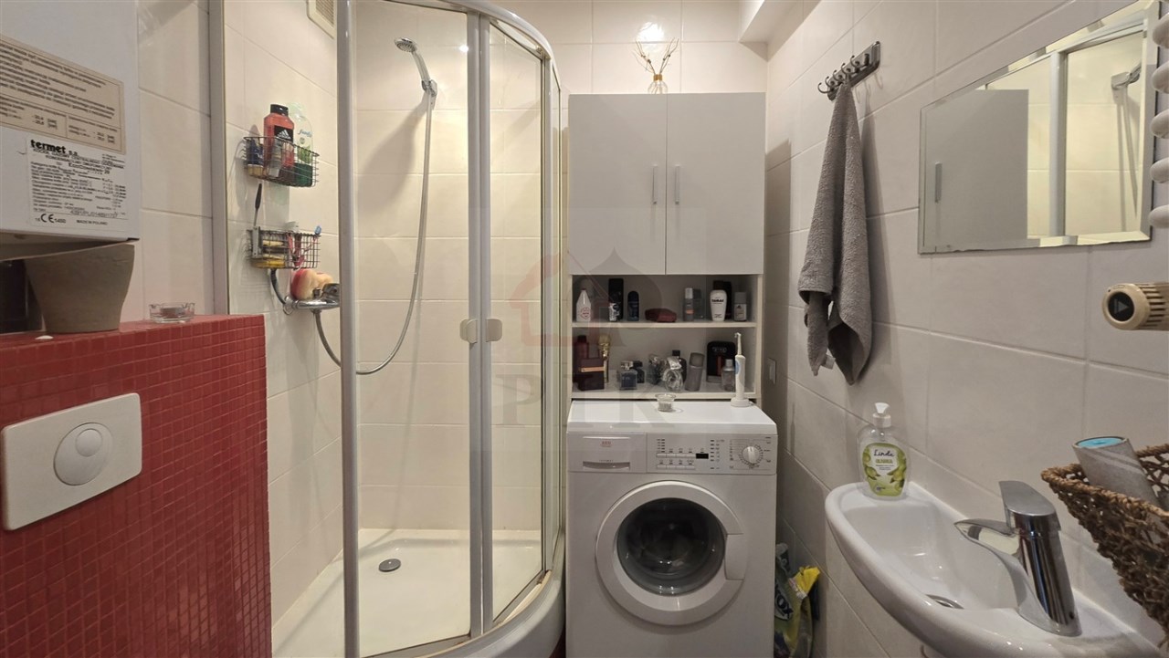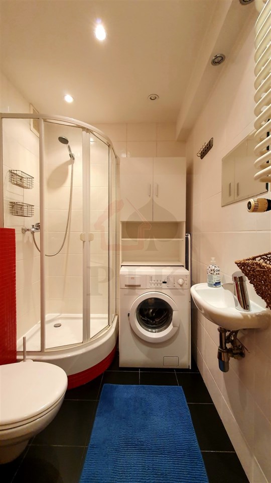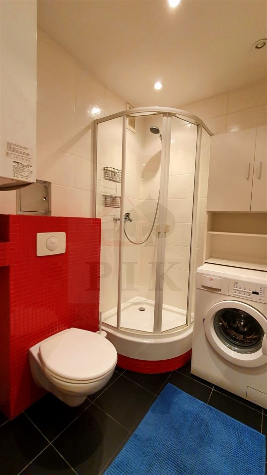 Kuchnia umeblowana, łazienka z pralką.